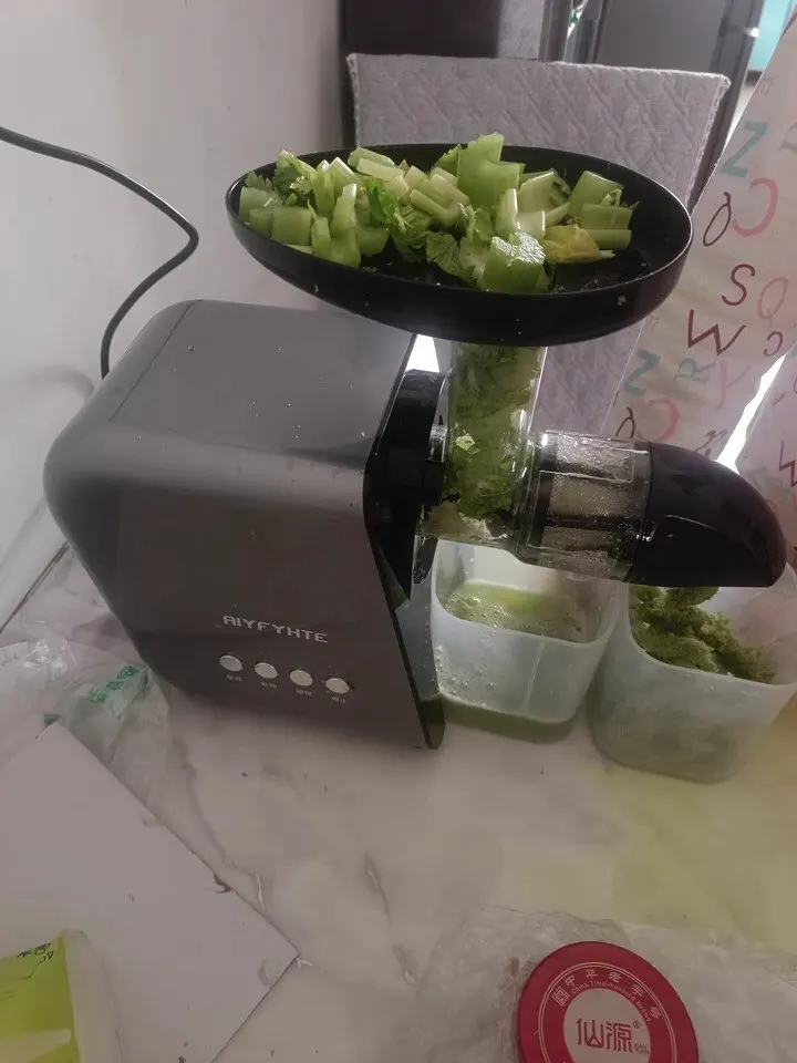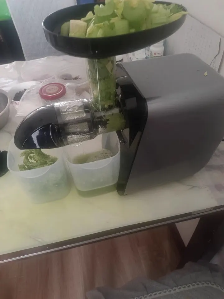 Excellent juicer. Very dry pulp remains, a lot of juice is squeezed out. Doesn't jam, and even grinds fruit bones into powder.