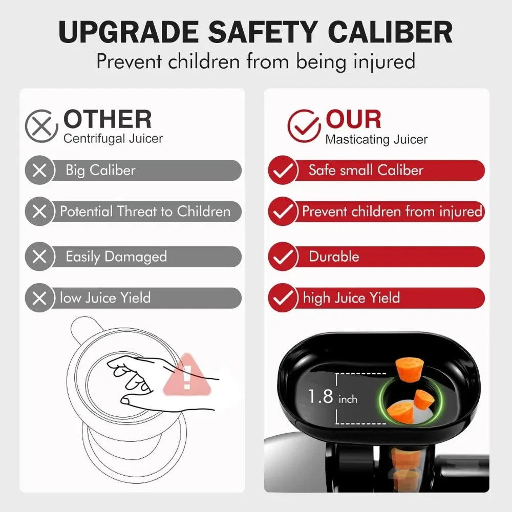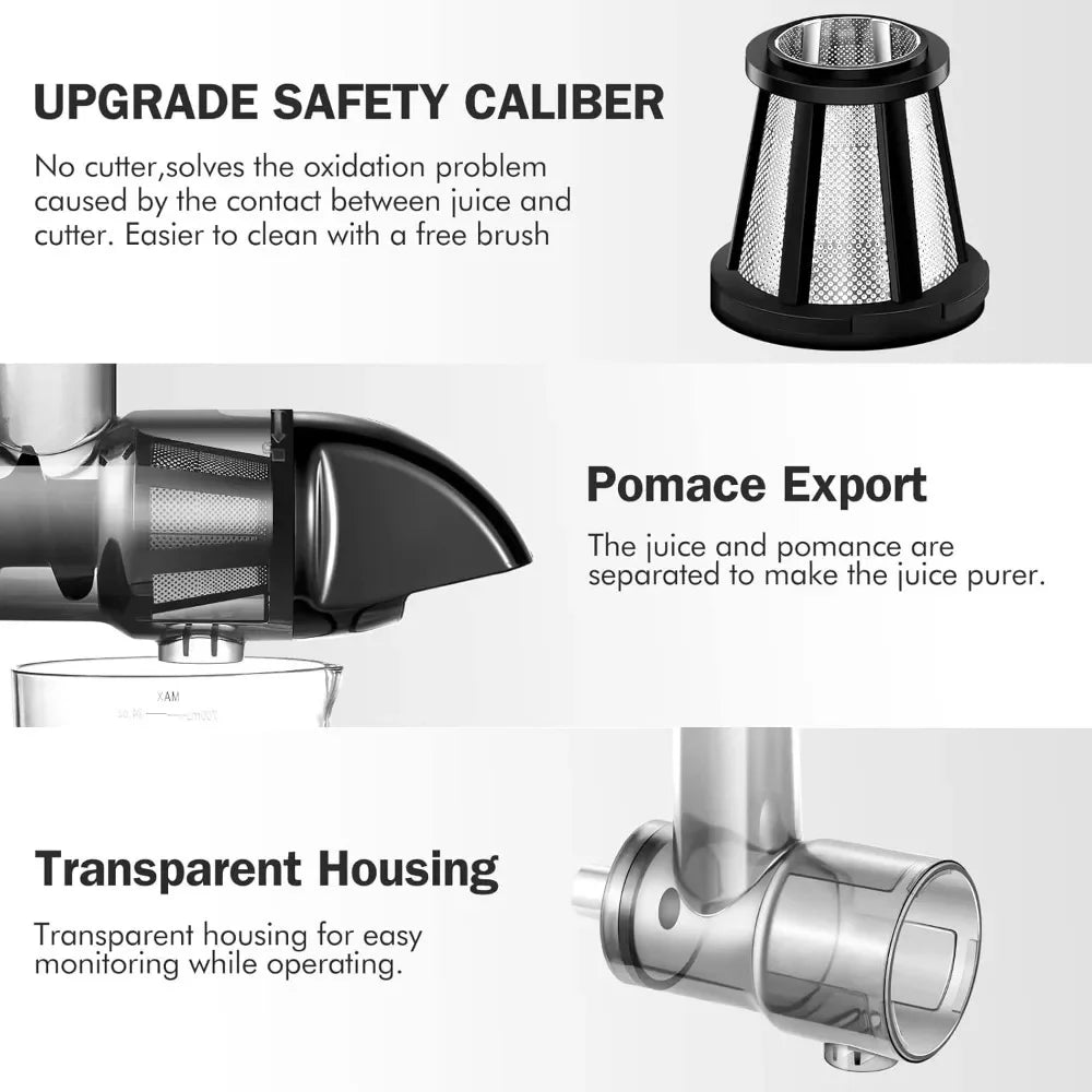 • 7-Spiral Masticating System – Maximizes juice yield and nutrient retention.